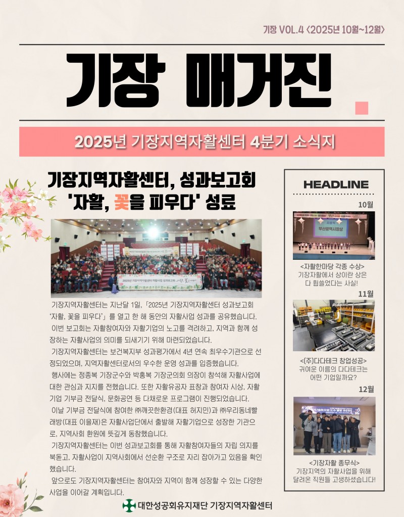 2025년도 4분기 기장지역자활센터 웹진