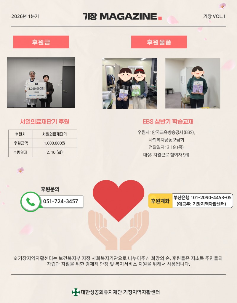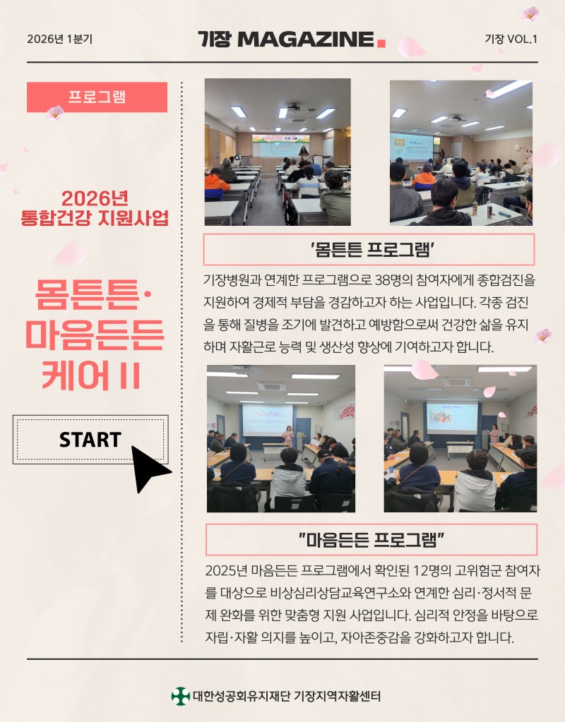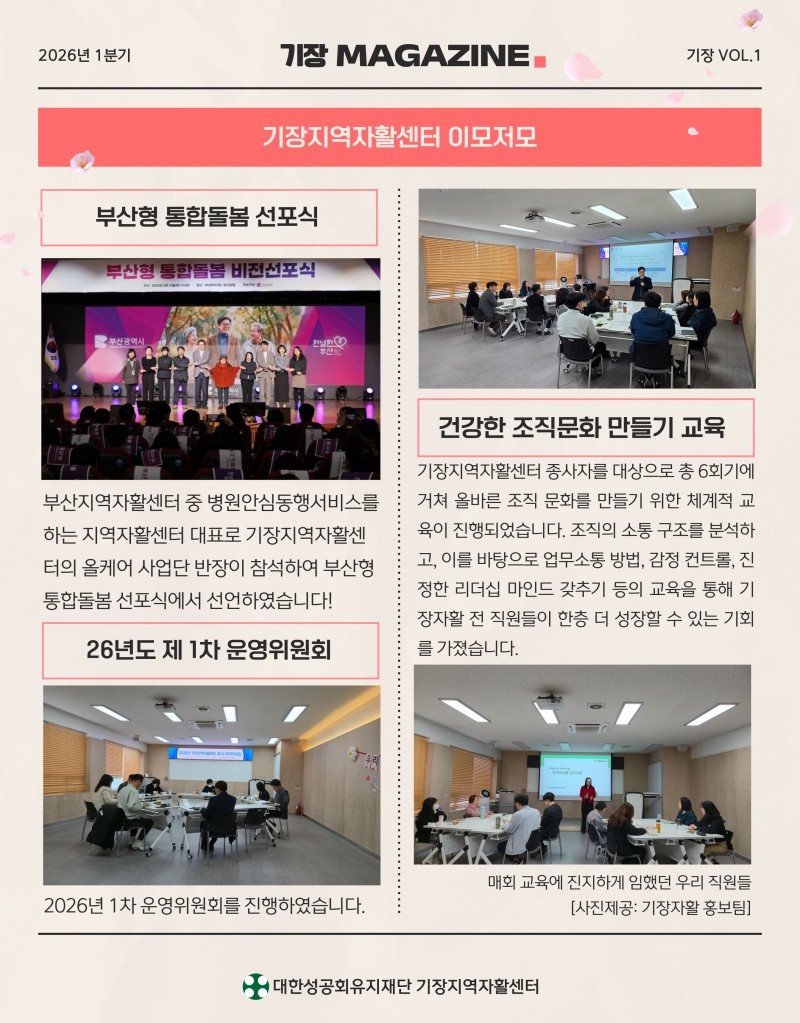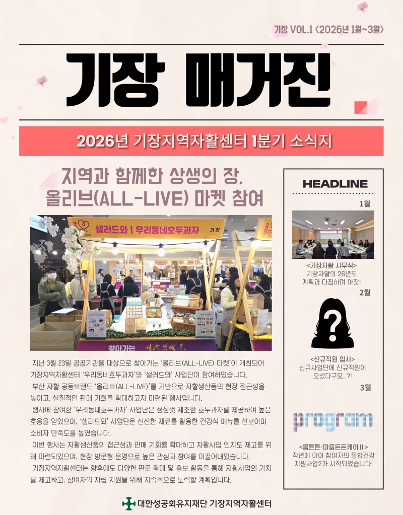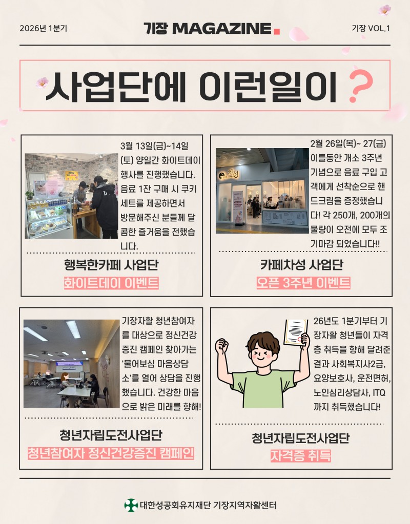 2026년도 1분기 기장지역자활센터 웹진 페이지 정보 작성자 최고관리자 작성일26-04-09 17:34 조회34회 관련링크 https://stib.ee/r49N 9회 연결 다음글 목록 본문 다음글 목록